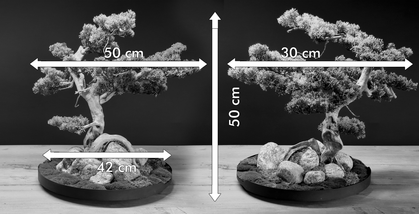 Deze bonsai straalt rust uit en komt het mooist tot zijn recht als die vrij in de ruimte wordt geplaatst.